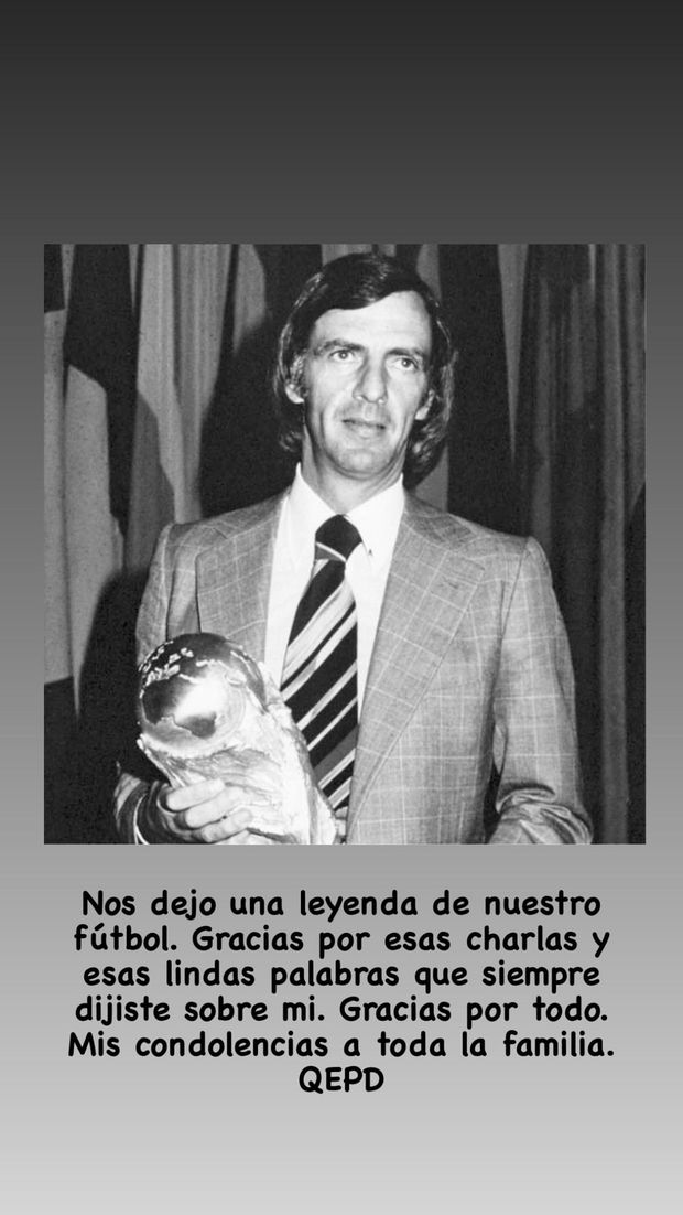 Di María recorreu à sua conta pessoal no Instagram para prestar homenagem a César Luis Menotti, treinador que conduziu a Argentina à vitória do Campeonato do Mundo de 1978, e que morreu, este domingo, aos 85 anos.