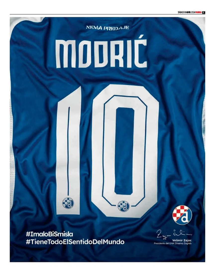 A ideia para convencer Modric está a ser muito elogiada pela criatividade: o Dinamo Zagreb comprou uma página do jornal Marca, conhecidamente afeto à cidade de Madrid e aos merengues, na qual colocou uma fotografia de uma camisola do clube, com o nome de Modric nas costas. #FazTodoOSentidoDoMundo, aparece ainda, na parte inferior do anúncio.