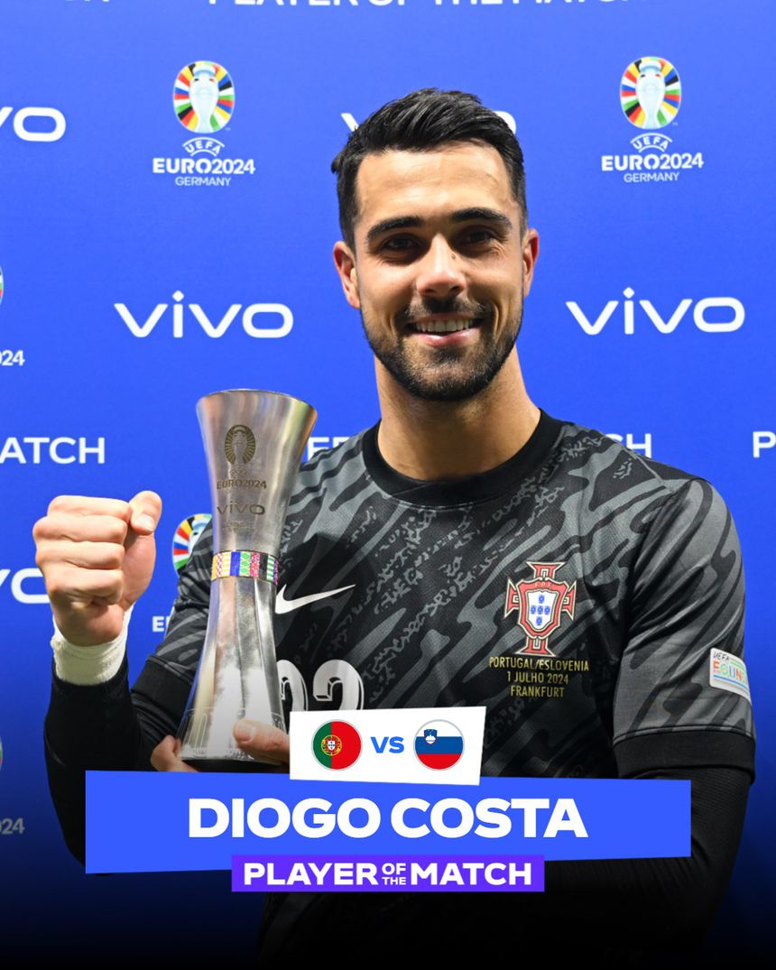 Como seria de esperar, a UEFA atribuiu o prémio de homem do jogo a Diogo Costa, após uma excelente exibição na vitória de Portugal à Eslovénia, que valeu uma passagem aos quartos de final do Euro 2024.
