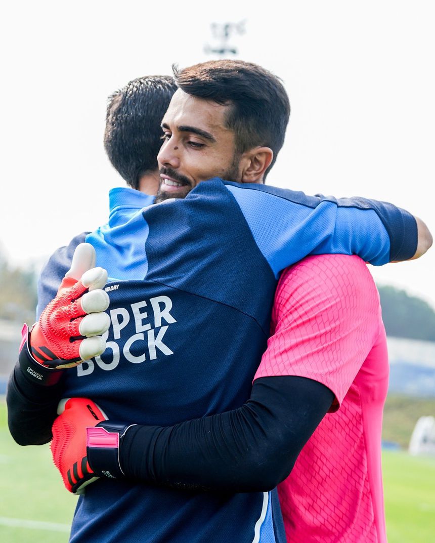 No final, Diogo Costa e Vítor Bruno envolveram-se num abraço apertado, numa manhã de treino dedicada à deslocação ao terreno do V. Guimarães, sábado, às 18 horas, no Estádio D. Afonso Henriques.