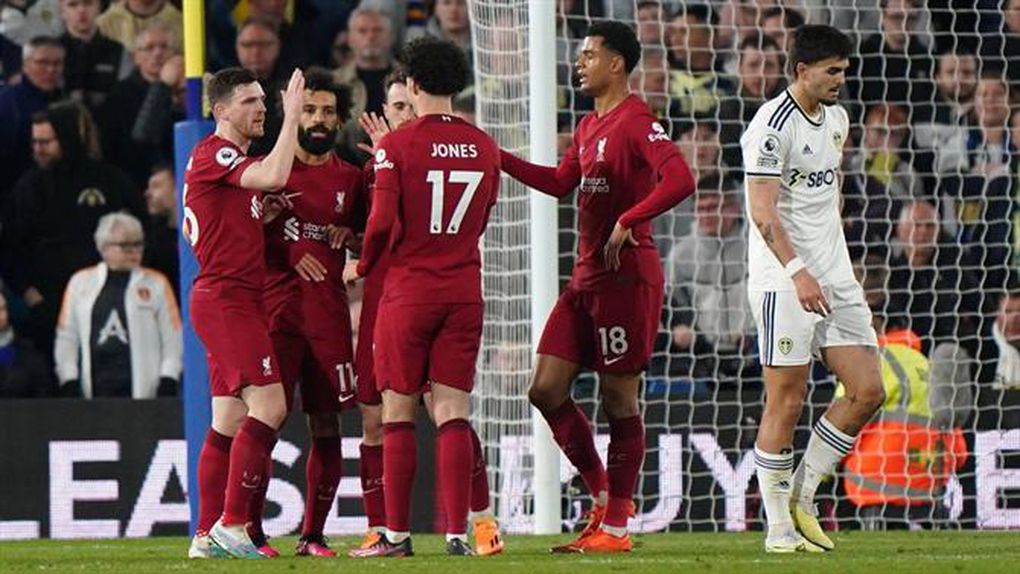 O Liverpool vai vencendo o Leeds United, ao intervalo, por 2-0, na 31.ª jornada da Premier League, com golos de Gakpo (35') e Salah (39'), o último assistido pelo português Diogo Jota.