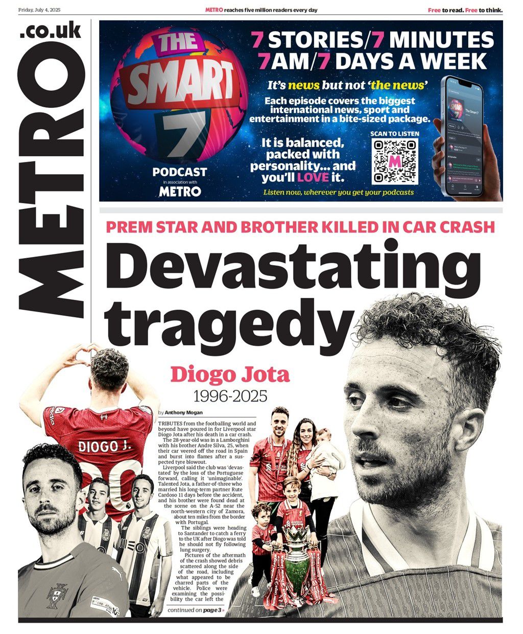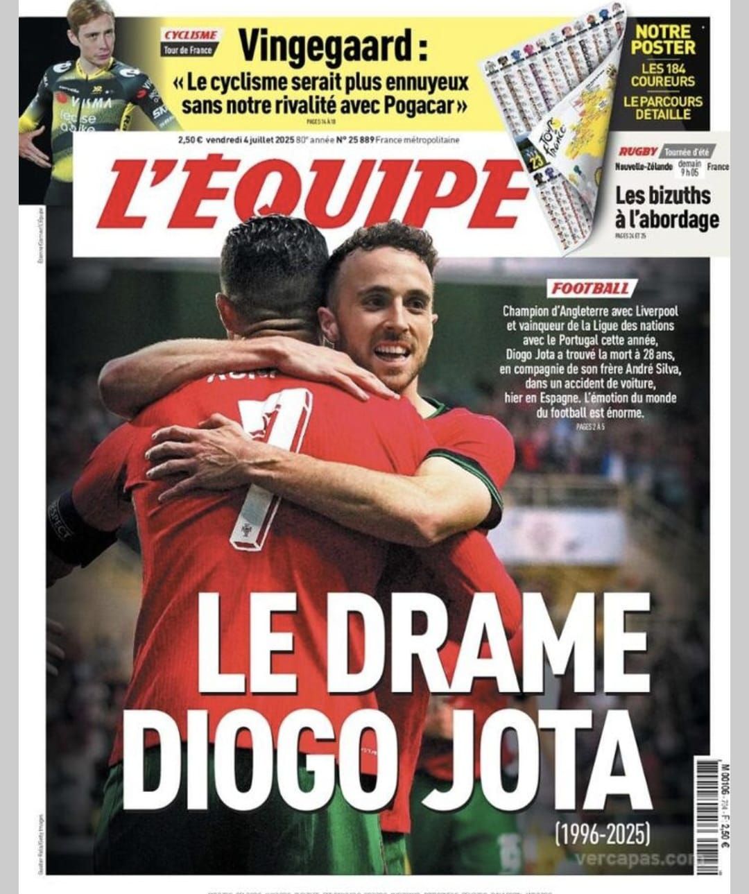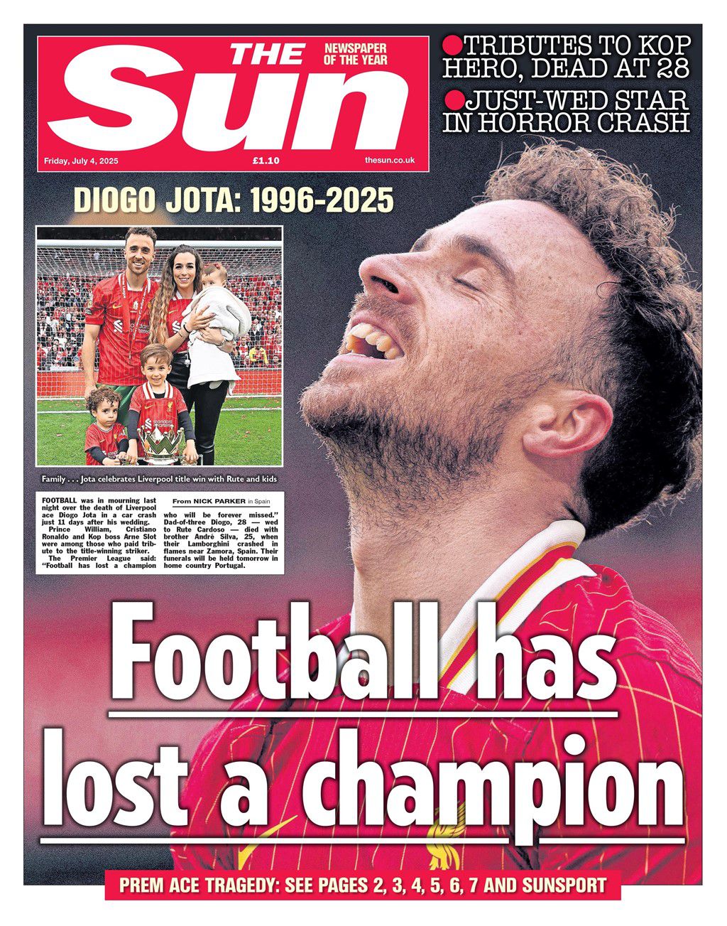 Diogo Jota: capas dos jornais evocam jogador do Liverpool