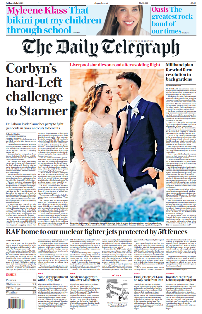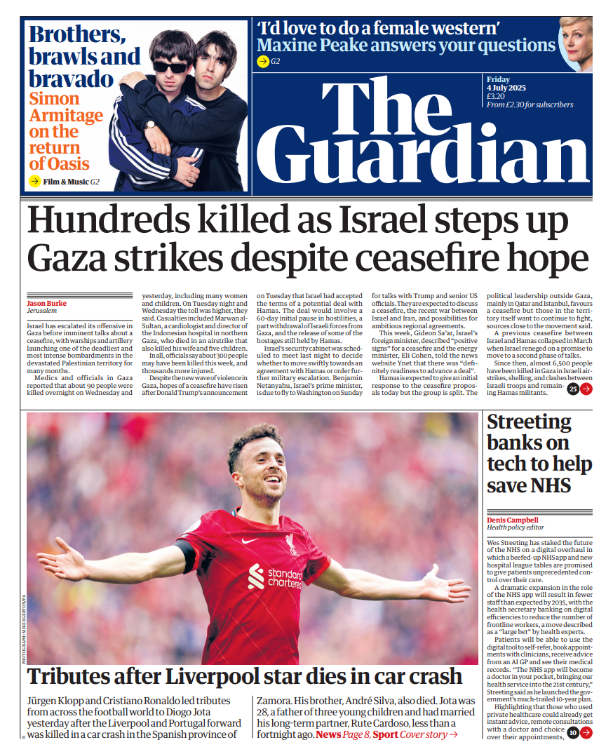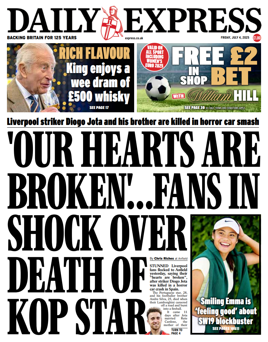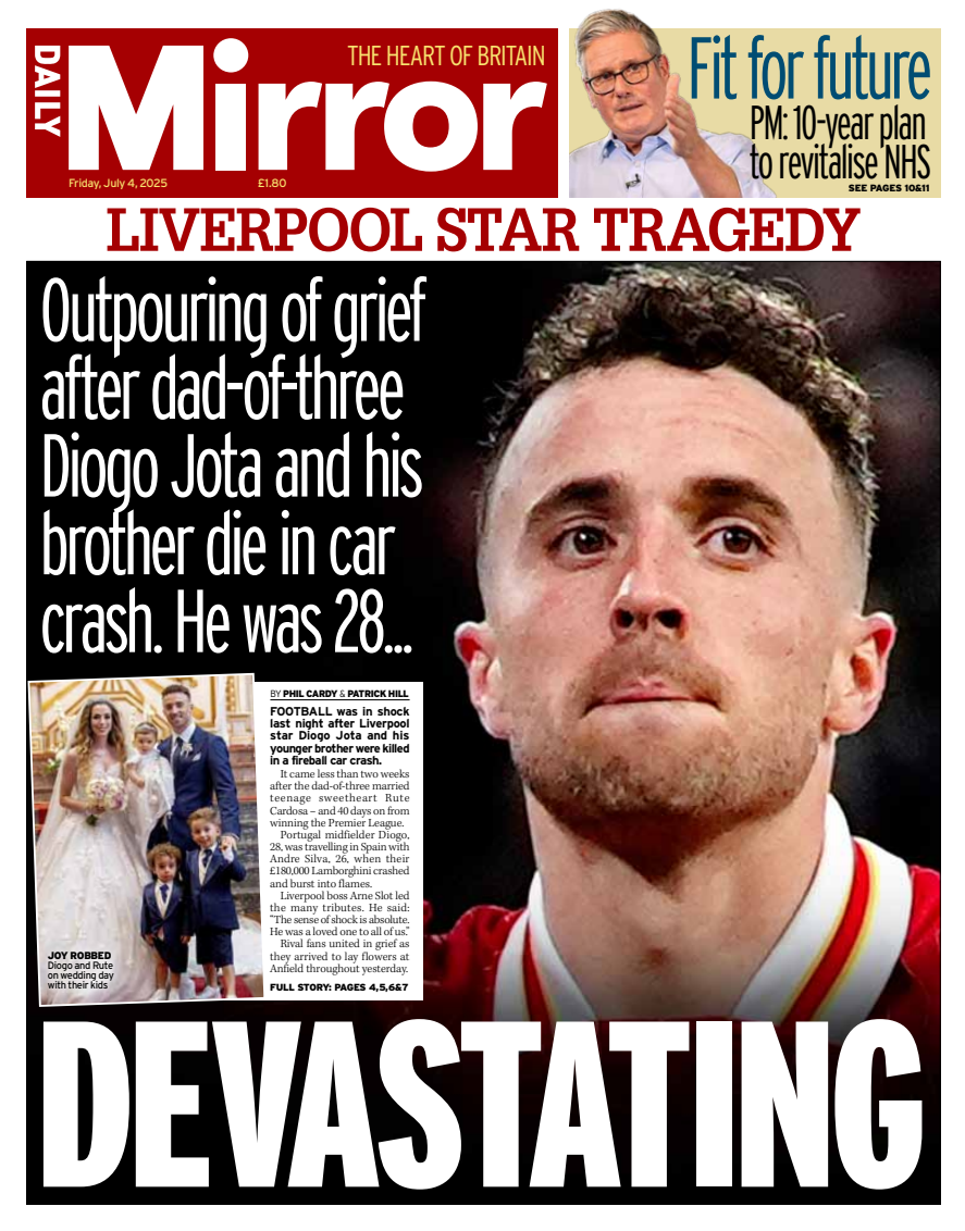 Diogo Jota: capas dos jornais evocam jogador do Liverpool