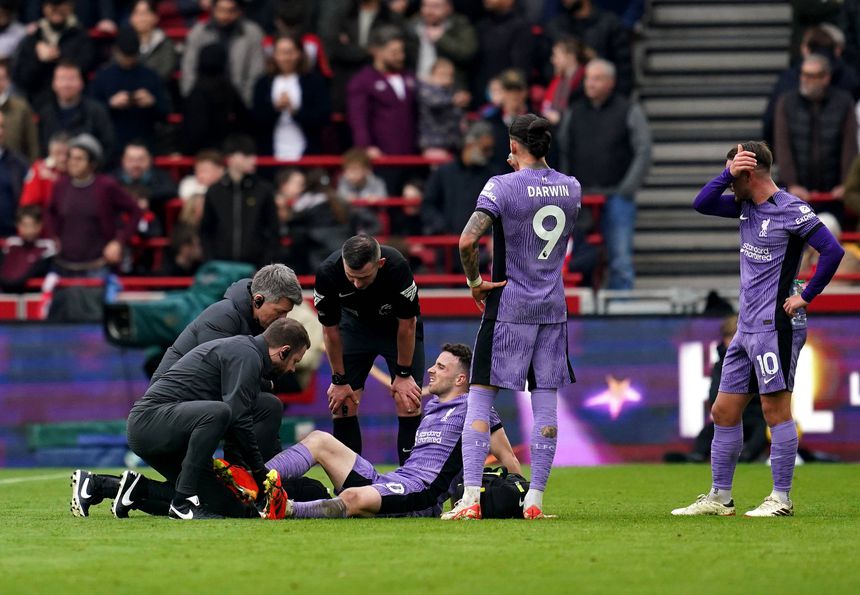 Poucos minutos de fazer uma bela assistência para o golo de Darwin, Diogo Jota lesionou-se durante o Brentford-Liverpool deste sábado.