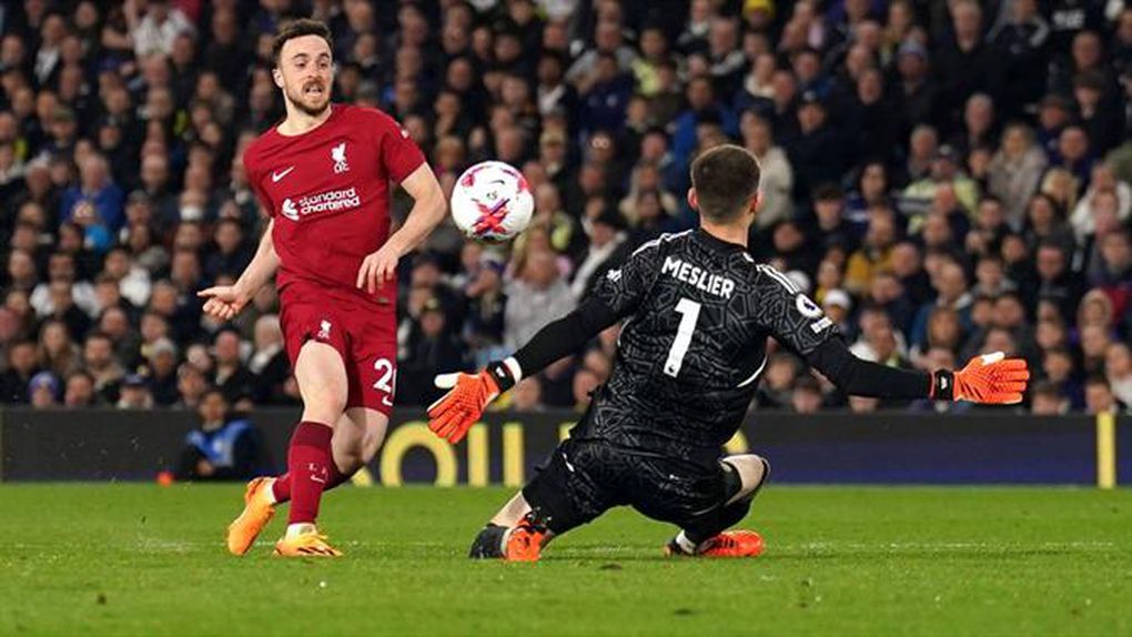Antes do tento de Diogo Jota, Sinisterra tinha reduzido para o Leeds no início da segunda parte (47’), aproveitando um erro de Konaté.