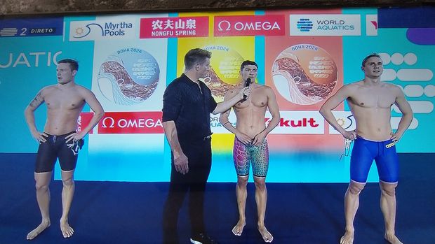 Com a família nas bancadas da piscina de Doha, foi ainda ofegante que Diogo Ribeiro falou após a conquista da segunda medalha de ouro nos Mundiais de natação. «Foi uma corrida dura, só posso agradecer ao público e aos meus colegas e todos os que me apoiam», declarou o atleta do Benfica, que aos 19 anos já é o nadador português mais consagrado de sempre, ficando-lhe apenas a faltar uma final olímpica, que até ao momento só Alexandre Yokochi atingiu, mas que poderá igualar após carimbar passaporte para Paris-2024, no próximo verão, onde estará, sem excessivo otimismo, como grande esperança de medalha.