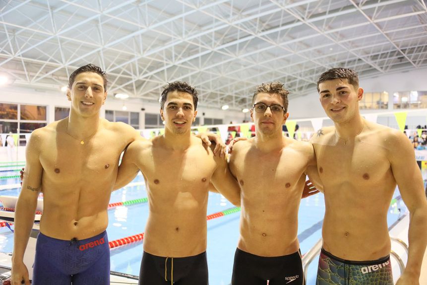 O quarteto recordista: Miguel Nascimento, Gustavo Ribeiro, Diogo Costa e Diogo Ribeiro Fotografia Luís Filipe Nunes/FPN