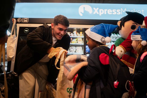 Diogo Ribeiro, campeão e recordista mundial de natação do Benfica, uniu-se à causa e participou na distribuição de presentes aos mais novos.