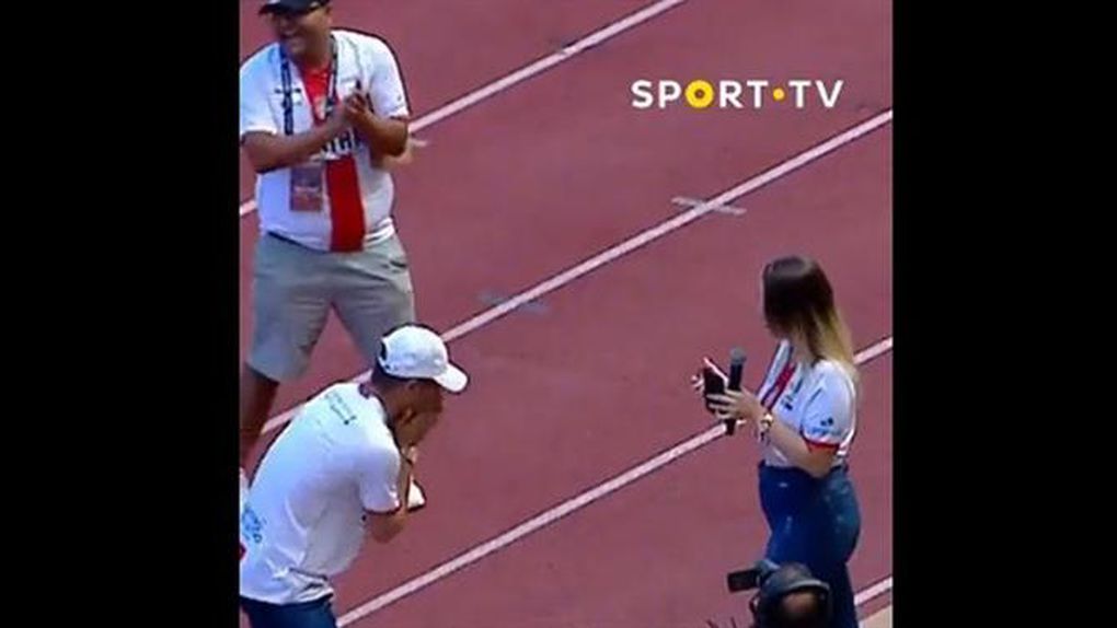 A estreia da União de Leiria na Liga 2 no estádio Dr. Magalhães Pessoa, este sábado, diante do Benfica B, ficou marcada por pedido de casamento feito ao intervalo do jogo.
