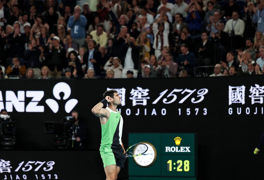 Novak Djokovic perdeu pela primeira vez uma final do Open da Austrália. Carlos Alcaraz levantou o troféu depois de conseguir uma reviravolta e pela primeira sagrar-se campeão em Melbourne, com os parciais de 2/6, 6/2, 6/3 e 7/5 em 3h02min. Aos 22 anos e 272 dias, o atual número 1 do mundo fez história, ao tornar-se no mais jovem tenista a ter no currículo todos os Grand Slam.