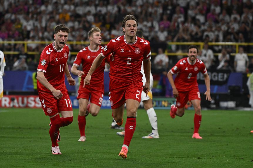Naturalmente, o defesa festejou efusivamente o golo que colocava os dinamarqueses em vantagem na eliminatória dos oitavos de final, mas mal sabia ele o que ia acontecer nem três minutos depois.