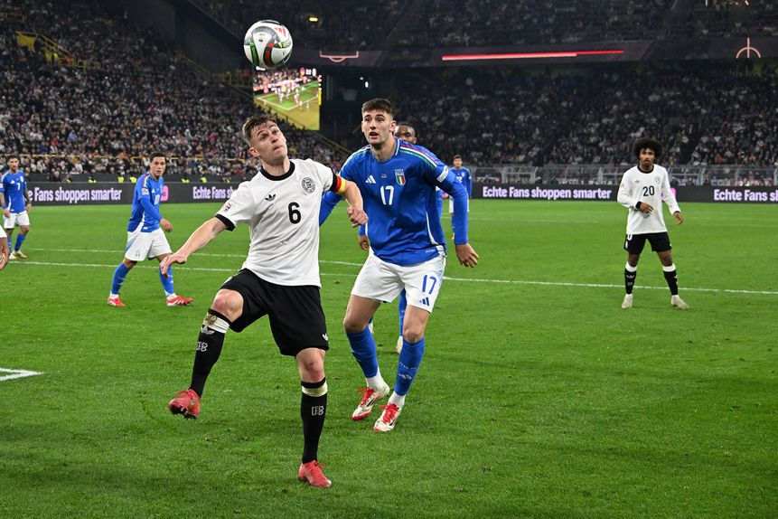 Costuma-se dizer que «no futebol, são 11 para 11 e, no final, ganha a Alemanha». A partida no Signal Iduna Park provou isso mesmo. Desde o apito inicial, os alemãos mostrarem sempre mais vontade, acutilância e esclarecimento, perante uma seleção de Itália que parecia supreendida pela impetuosidade germânica.