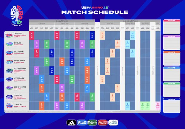 Do primeiro jogo no País de Gales ao recinto da final: tudo sobre o Euro 2028