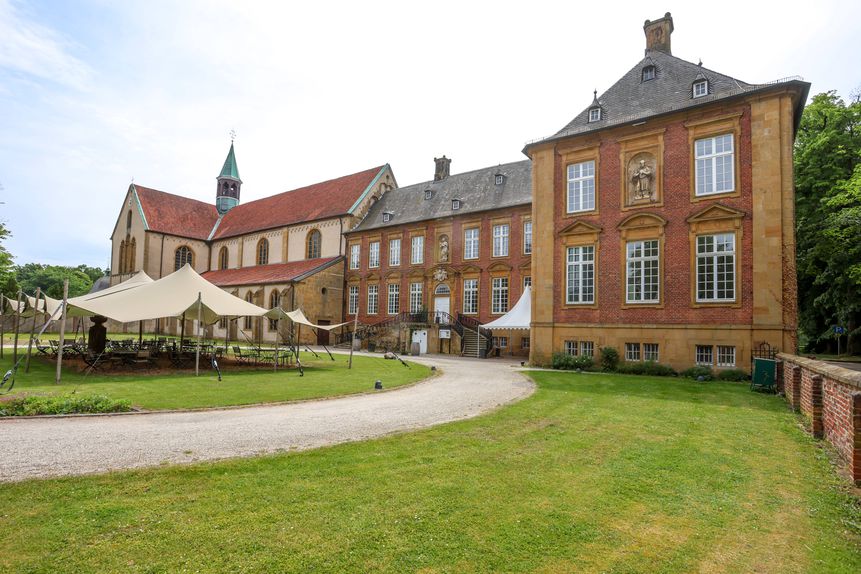 O volume é alto, posso garantir, mas não incómodo: transporta-nos, até, por instantes, para outra dimensão. Tudo porque o edifício hoje transformado em hotel faz parte de um complexo religioso cuja construção teve início em 1185, prolongando-se até 1222. Foi o primeiro convento da Vestfália construído com tijolos e sua imponência continua a espantar quem o visita. E os sinos dobram, num som que encanta.