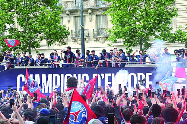 Mesmo depois dos desacatos que marcaram a noite em Paris, o dia foi de festa para o PSG. Menos de 24 horas depois de erguer o troféu em Munique, após golear por 5-0 o Inter, seguiu para parada de autocarro, que passou pela residência oficial do Presidente da República de França e terminou com apoteose no Parque dos Príncipes.
