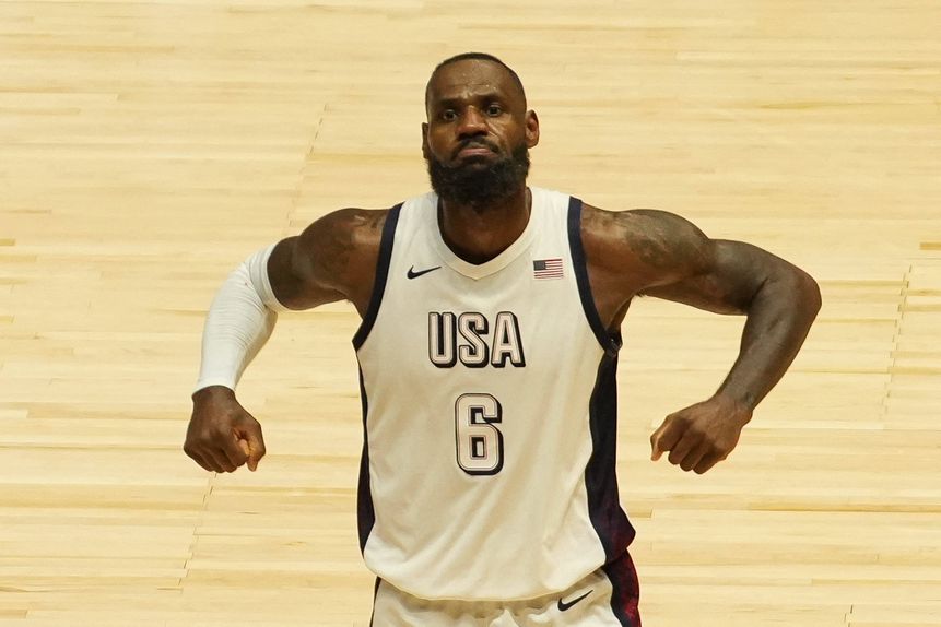 James, anunciado mais cedo como porta-estandarte dos americanos na cerimónia de Abertura dos Jogos na sexta-feira, no desfile de barco pelo rio Sena, marcou 20 pontos para os EUA, Joel Embiid marcou 15, Stephen Curry fez 13 e Anthony Edwards terminou com 11.