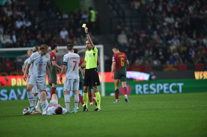 29’ Finnbogasson levantou o braço para obstruir a progressão de Cristiano Ronaldo. O capitão português retribuiu com um gesto ao estilo de chega para lá. A queda do jogador islandês pareceu demasiado forçada.