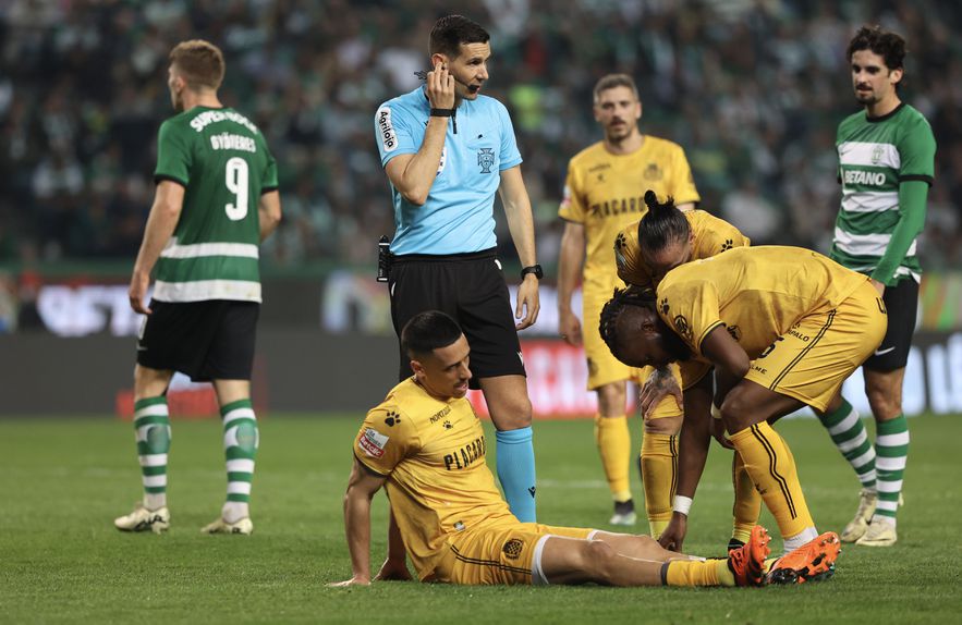 18' Nuno Santos levantou a perna direita, atingindo com a sola da bota o pé de Pedro Malheiro. O avançado leonino voltou a não concordar com decisão (correta) do árbitro, que mais uma vez leu com benevolência abordagem que foi negligente.