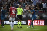 89' Maracás chegou tarde e pisou o pé de Gyokeres, antecipou-se ao adversário. A entrada foi negligente e bem punida com segunda advertência e consequente expulsão.