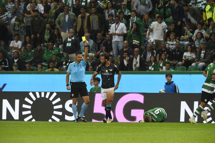 3' Gonçalo Inácio foi batido pela velocidade de João Camacho e agarrou o adversário, impedindo que progredisse para zona prometedora. Viu bem o primeiro cartão amarelo da partida.