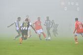 5' Aconteceu, aos 4'14", aquilo que era previsível acontecer: a interrupção do jogo devido ao nevoeiro intenso.