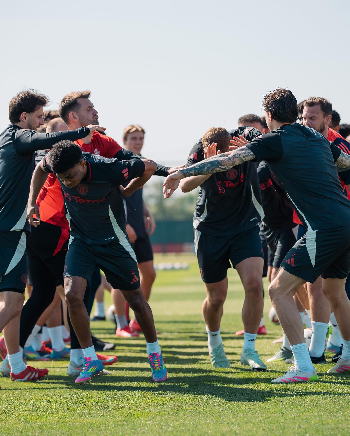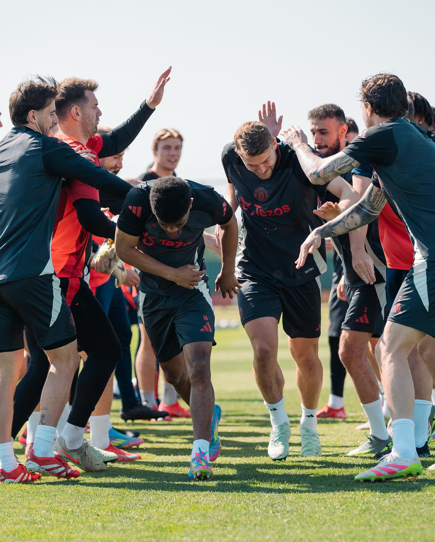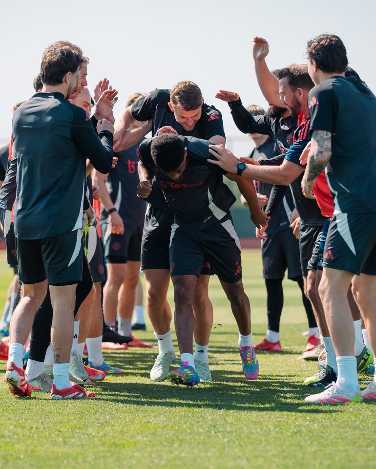 Toby Collyer foi visto a fazer treino individualizado com um preparador físico antes de o grupo de 28 jogadores à disposição de Amorim iniciar os 15 minutos de treino abertos à imprensa. Para além de Dalot, são baixas Lisandro Martinez e Joshua Zirkzee, que não jogam mais esta temporada.