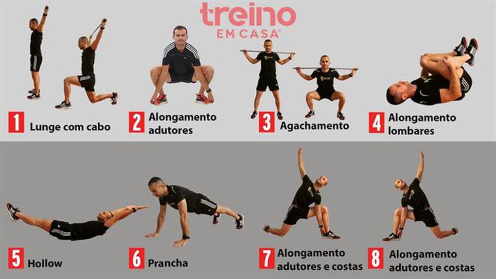Protocolo: Treino funcional em circuito com 8 exercícios, realizando cada exercício durante 45 segundos com 15 segundos de intervalo. Fazer 3-5 rondas do circuito de acordo com a sua condição física.