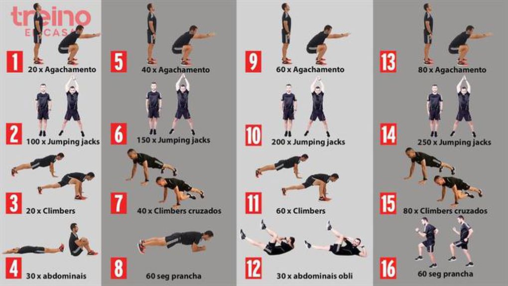 - Se houver algum exercício que cause desconforto ou dúvidas passa para o seguinte
