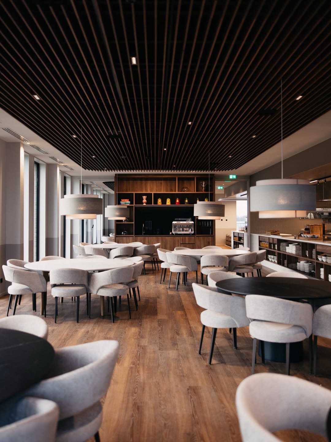 Decoração minimalista, com muitos pormenores à identidade do clube, e muito conforto, para receber todos os atletas do clube e potenciar o seu rendimento.