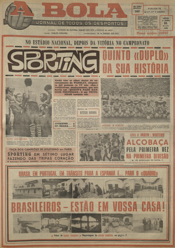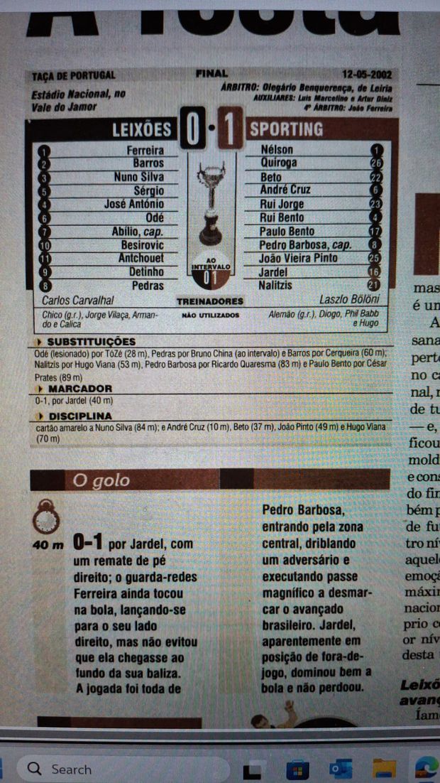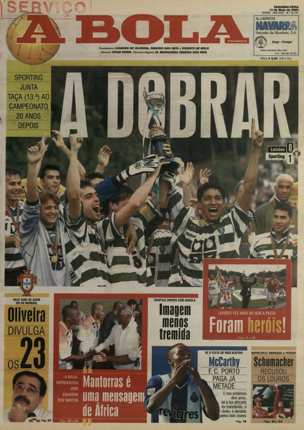 Eis as capas de A BOLA das últimas duas dobradinhas, bem como as fichas desses jogos de 1982 e 2002: