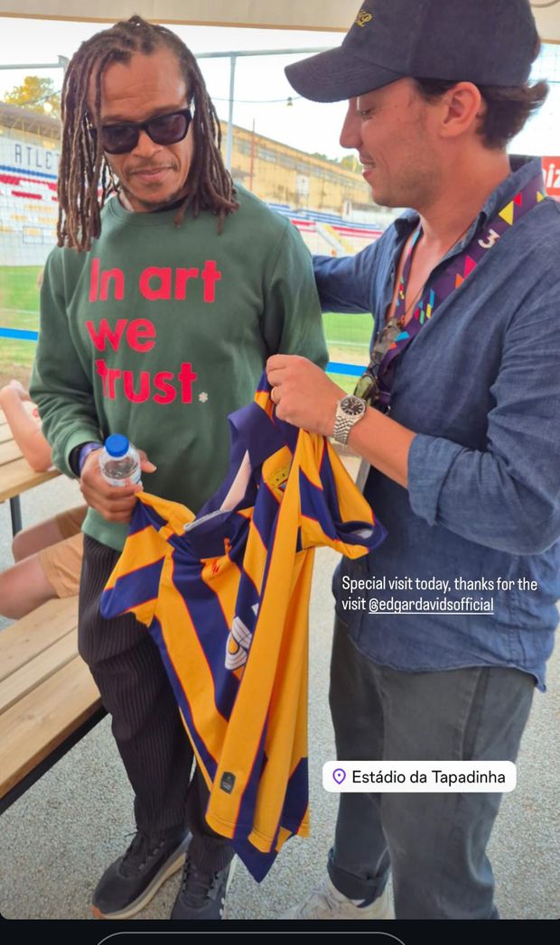 Edgar Davids esteve na Tapadinha e recebeu um presente do Atlético