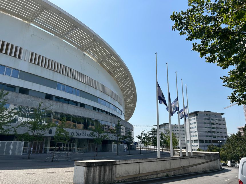 Bandeiras a meia-haste no Estádio do Dragão (Foto: D. R.)