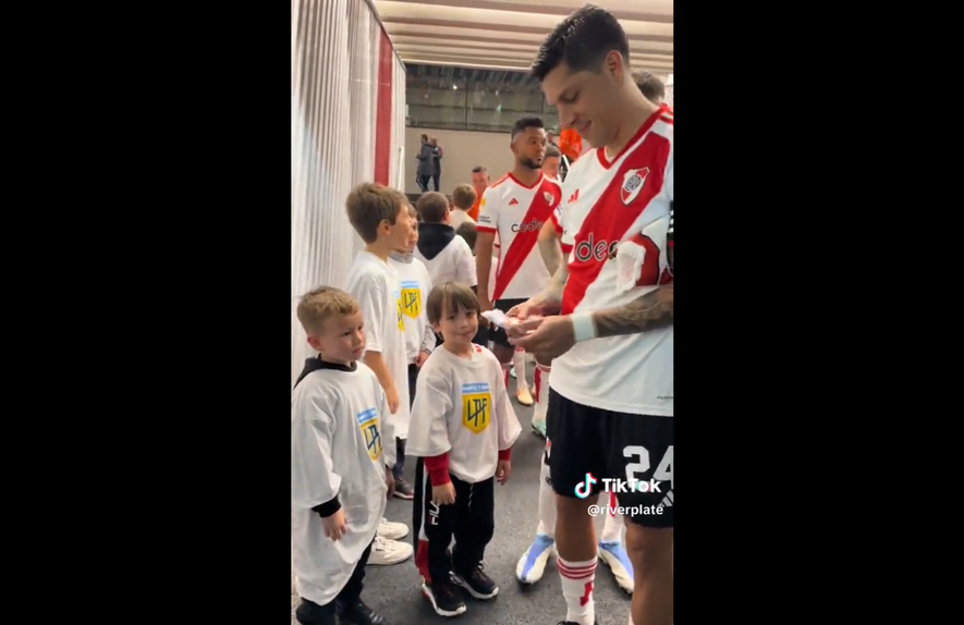 O momento que antecedeu a subida das equipas de River Plate e Atlético Tucumán, em jogo a contar para a quinta jornada da Taça da Liga da Argentina, ficou marcado por um episódio emocionante.