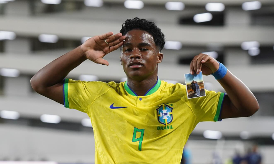 Endrick esteve em destaque na vitória do Brasil frente à Colômbia, por 2-0, no Pré-Olímpico, ao apontar um golo.