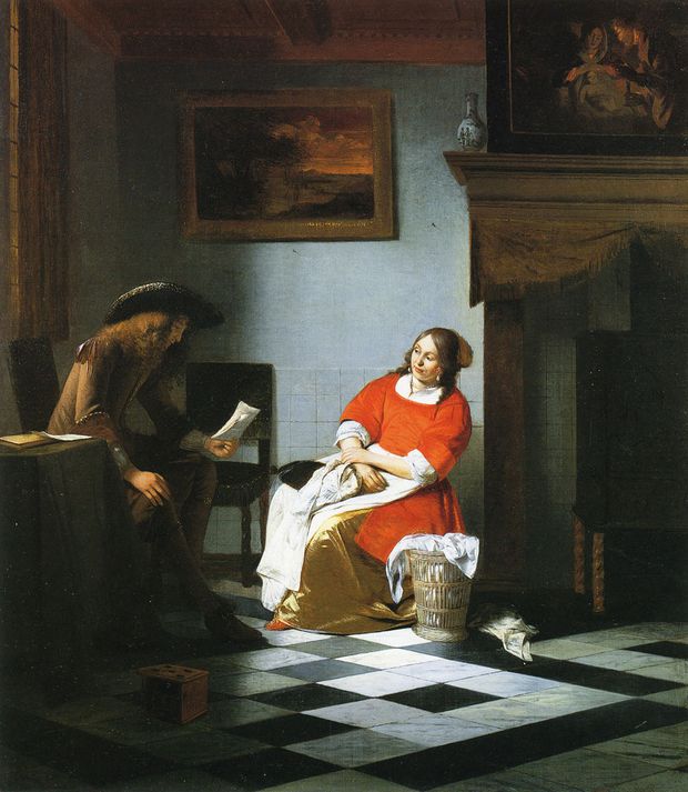 Tal como não gosto de me deitar sem antes tentar resolver mal entendidos ou situações desagradáveis, não gosto de terminar uma conversa com notas tristes e negativas. Por isso, volto a olhar para uma obra prima do pintor Pieter de Hooch, que entre 1663 e 1665 pintou Homem Lendo Uma Carta A Uma Mulher. Como em qualquer forma de arte, cada um interpreta à sua maneira.