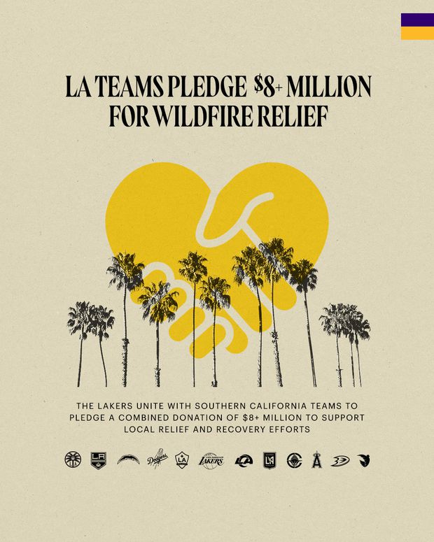 Beginning with Monday's game, the Lakers will host a donation drive to support the Los Angeles Community and wildfire relief efforts.https://t.co/pYvHfJt0GL