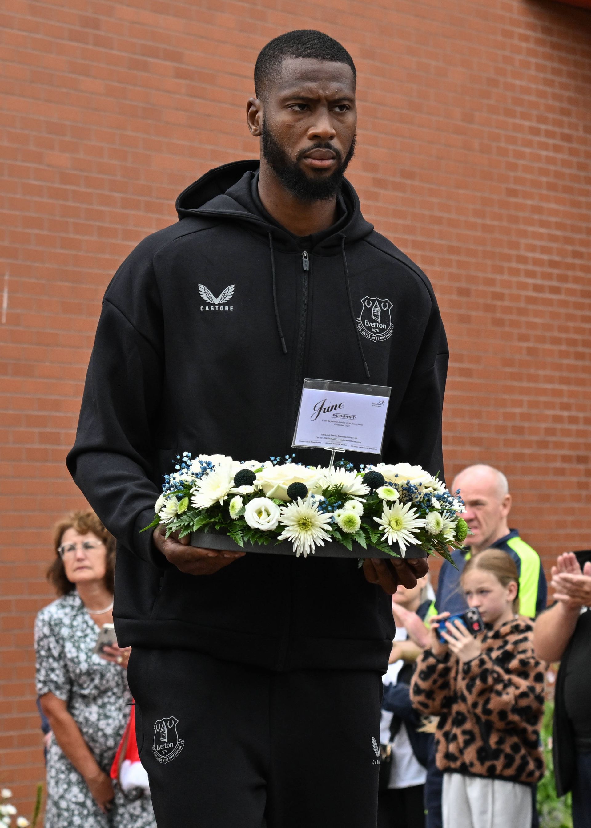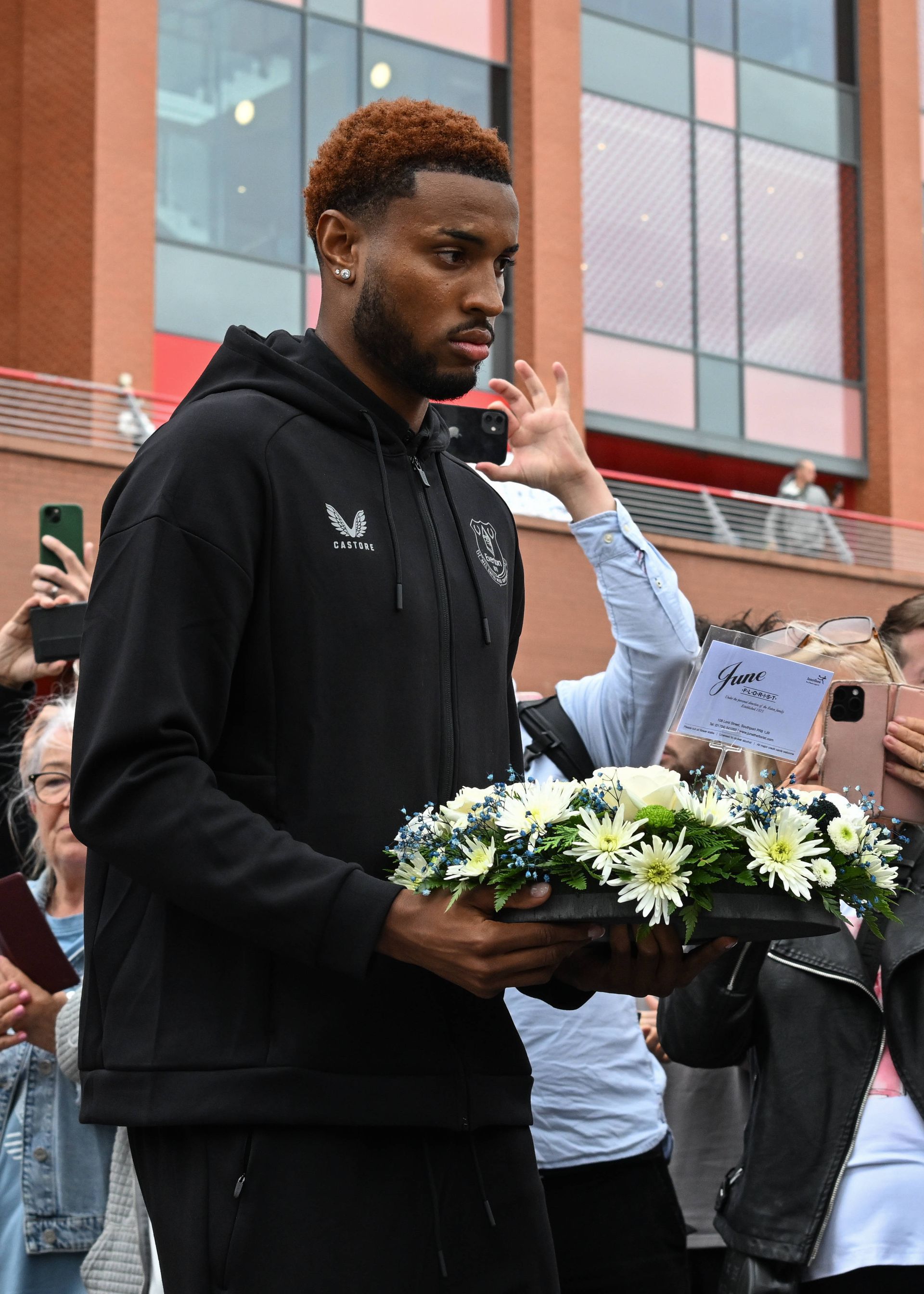 Beto e Chermiti do Everton, rival do Liverpool, representaram o clube, ao lado do embaixador Ian Snodin, e deixaram flores ao compatriota