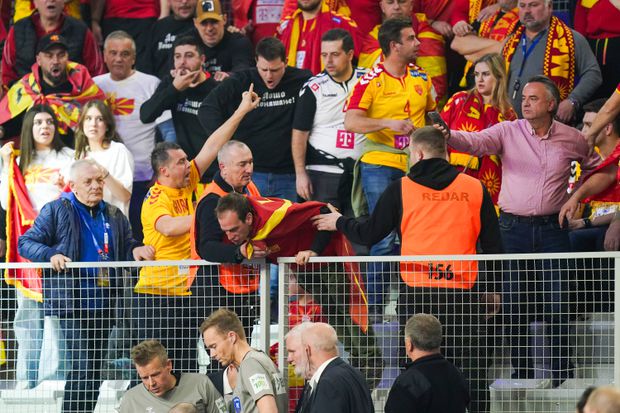 Skandalscener vid slutsignal – Staffan Olssons Nederländerna tvingades utrymma när nordmakedonska fans kastade in föremål på planen ❌ pic.twitter.com/Y1DZdur0yF