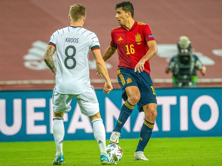 O meio-campo tem mostrado uma enorme complementaridade entre si. Fabián Ruiz tem pautado os ritmos com calma e precisão e Pedri adiciona a irreverência e um pouco mais de verticalidade, tanto no passe, como na progressão. Ainda à espreita está Dani Olmo que, sempre que foi chamado, brilhou com espetacular chama criativa. Resta saber se será escolhido para o onze titular, agora que está bem fisicamente. Atrás deles, está Rodri, que continua a ser, quase consensualmente, o melhor médio defensivo do Mundo. Além da estabilidade que dá aos colegas mais criativos, também tem armas que, com toda a simplicidade, são da maior eficácia - veja-se o seu golo frente à Geórgia.