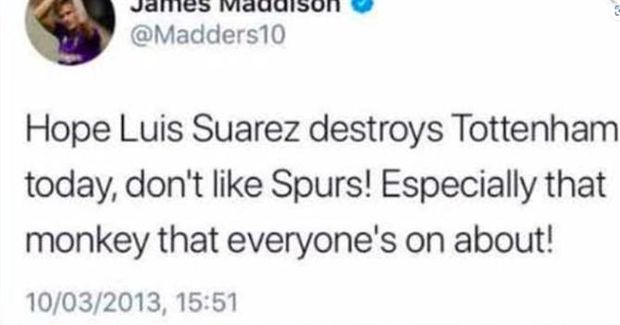 O tempo não esquece e as redes sociais muito menos. James Maddison está prestes a trocar o Leicester pelo Tottenham mas a mudança já está envolta em polémica ainda antes de ser oficializada, tudo por causa de alguns tweets que o médio ofensivo de 26 anos fez há mais de dez anos e que entretanto, descobriu o Daily Mail, já foram apagados pelo jogador.