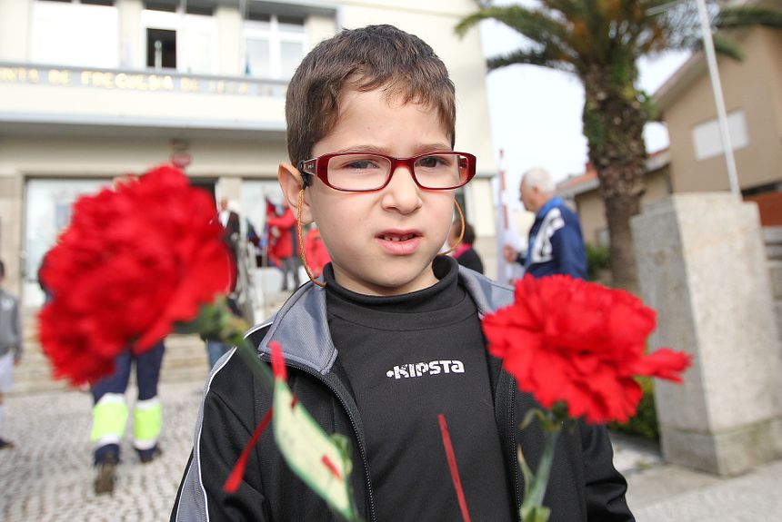 Criança com cravos (foto de arquivo:Vítor Garcez/ABOLA)
