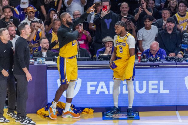 Aconteceu logo no primeiro jogo da fase regular, em que Lakers conseguiram vencer os Minnesota Timberwolves, a primeira vitória do treinador JJ Redick, por 110-103. A diferença é que Lebron jogou 34 minutos, e o filho pouco mais de dois.