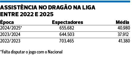 Os últimos dois jogos do campeonato em casa são uma amostra desse sentimento: contra o Moreirense estiveram nas bancadas do Dragão 27.374 espetadores e frente ao Famalicão não chegaram aos 40 mil (39.286). Parte da desmobilização explica-se pelo desaire pesado contra o Benfica, por 1-4, jogo que chamou 49.193 adeptos, igual ao número registado na receção ao Sporting. Todavia, o fenómeno já se fazia sentir antes. A partir do desafio com o Estoril (39.019), na 10.ª jornada, a 3 de novembro, as assistências diminuíram progressivamente, contrastando com a loucura que se viveu no arranque da Liga, com anúncios de lotação esgotada.