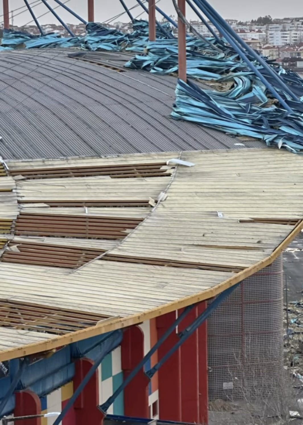 A cobertura do Estádio Dr. Magalhães Pessoa, casa do UD Leiria e palco da final-four da Taça da Liga, ficou danificada.
