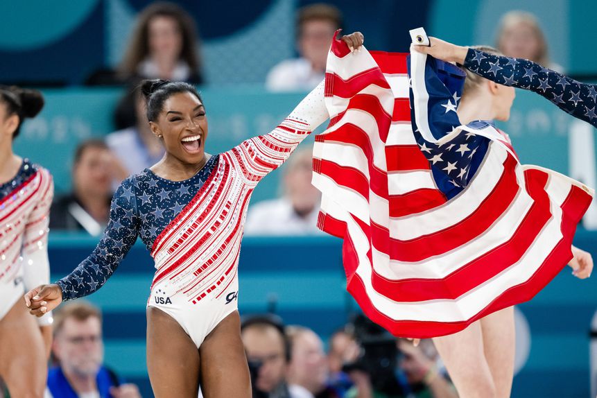 Na Arena Bercy, as norte-americanas venceram pela quarta vez o concurso por equipas de ginástica artística feminina e Simone Biles continua a bater recordes com a sua oitava medalha olímpica. No total foram 171,296 pontos, que permitiram o título que pertencia à Rússia. Itália ficou com 165,494 pontos e o Brasil assegurou 164,497 pontos, fazendo história com a primeira medalha coletiva nesta modalidade.