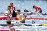 Os campeões mundiais da disciplina caem de quarto para sexto nos últimos 100 metros e a linguagem corporal de Messias, o mais novo dos dois, que assume o lugar traseiro no caiaque, é mais expressiva. Assenta a pagaia na embarcação e curva-se, de baixa.