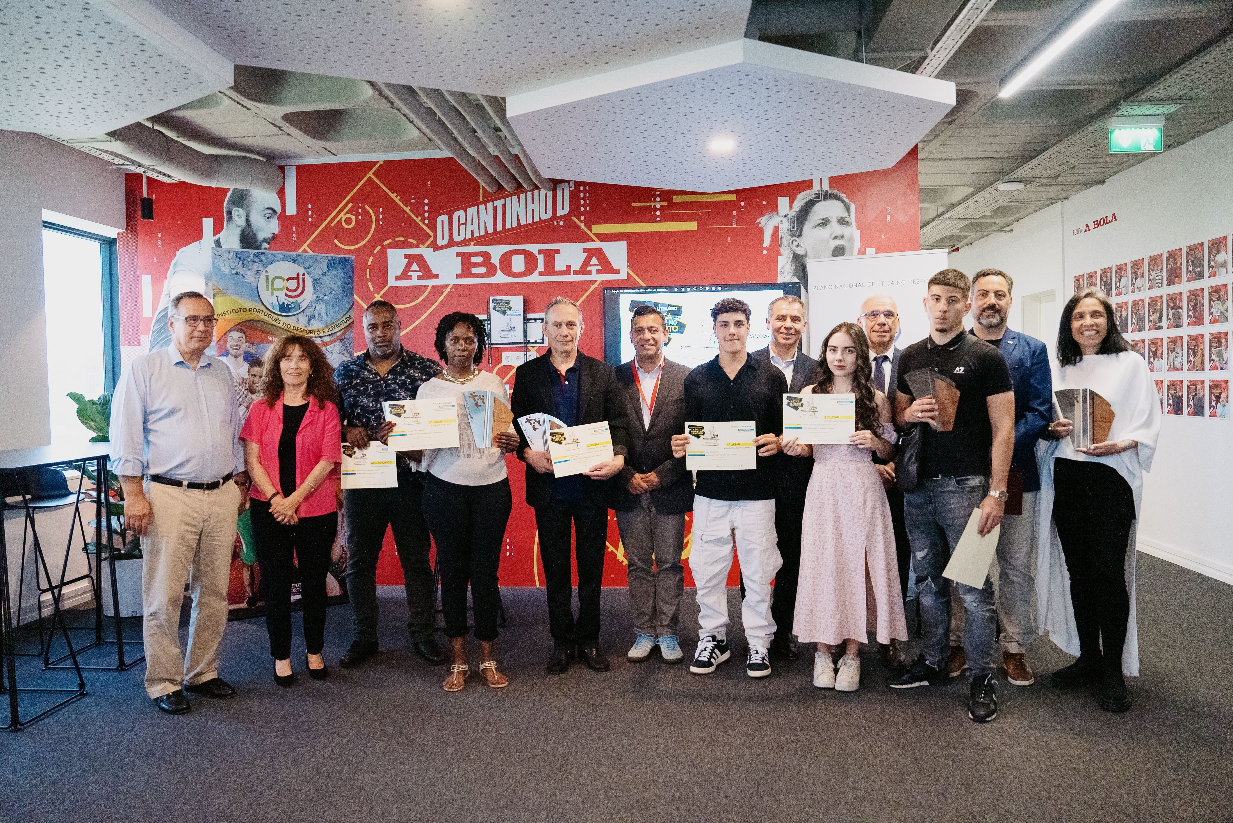 Pelo 12.º ano consecutivo, A BOLA integrou o júri dos prémios literários do Plano Nacional de Ética no Desporto. Estes prémios destinam-se a fomentar a ética entre alunos do ensino secundário público e de Centros Educativos e Estabelecimentos Prisionais. A cerimónia de entrega dos prémios e das menções honrosas decorreu esta segunda-feira, 3 de junho, nas novas instalações de A BOLA, e teve a presença do Secretário de Estado do Desporto, Pedro Dias.
