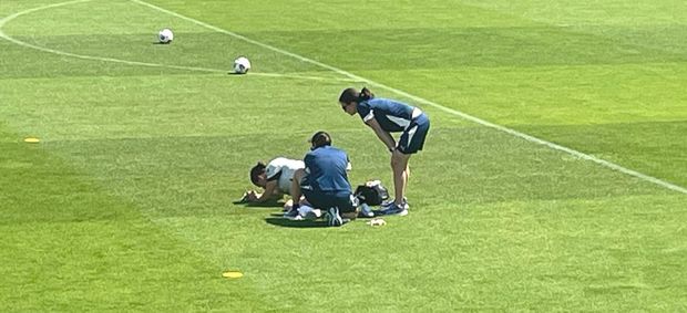 Durante os 15 minutos abertos à Comunicação Social, a avançada Telma Encarnação, de 23 anos, num lance fortuito de circulação de bola ficou caída no relvado, agarrada ao pé esquerdo. Prontamente assistida, foi bem visível o semblante de dor da madeirense que, ao sair do relvado, amparada, não conseguiu evitar lágrimas. A jogadora será reavaliada nas próximas horas.