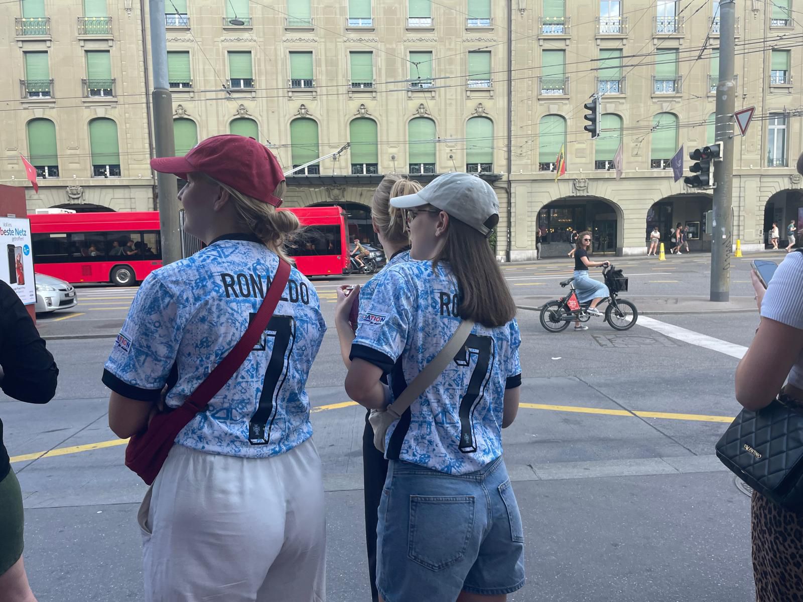 Adeptos portugueses passeiam pelo centro de Berna antes do jogo de Portugal, mas o tema das conversas é a morte de Diogo Jota e do irmão André Silva