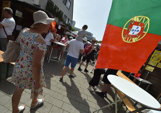 «Aqui existe outro Europeu, das tasquinhas, sentados à mesa. É comemorado uma vez por ano e é uma oportunidade para dar a conhecer Portugal. O futebol aqui até passa para segundo plano e a afluência cresce, sobretudo, quando a Alemanha ganha», conta-nos Gaspar, um dos responsáveis pela bancada portuguesa.